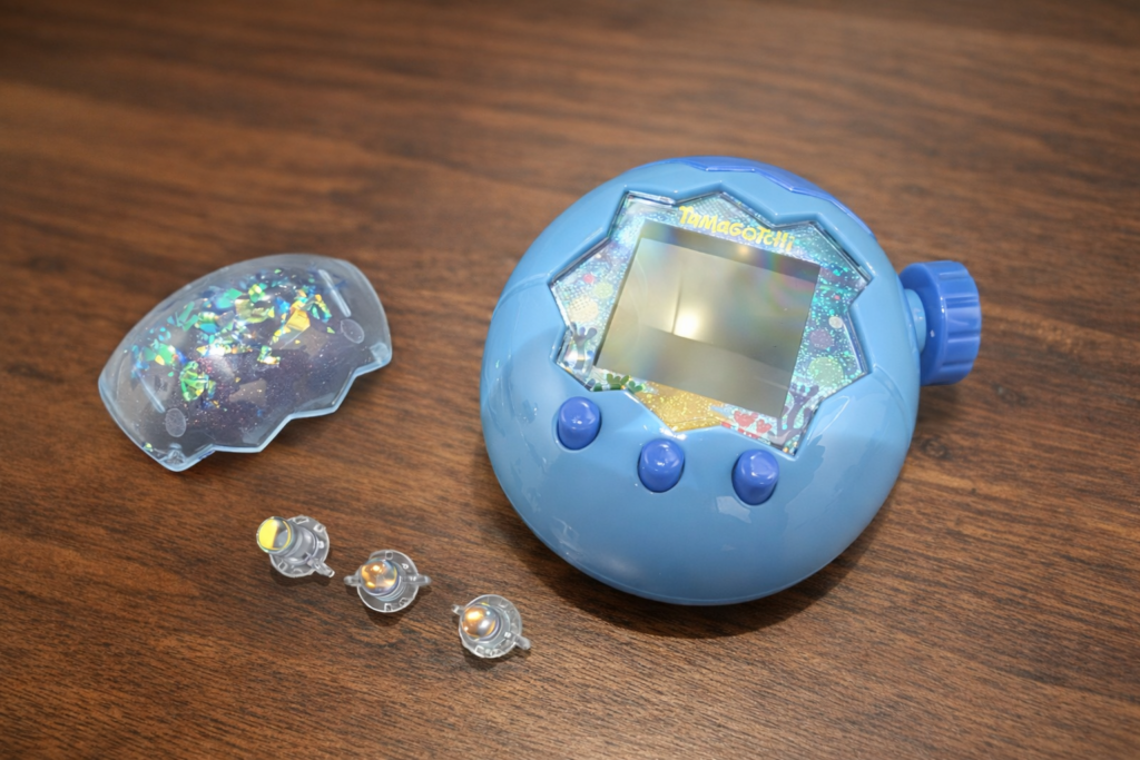 最後に電池を入れて動作確認をしてください。電池を入れたら日付と時間を設定する画面が出てくるかと思います。現在時刻に合わせて、育てていたたまごっちが無事に画面表示されたら復元完了です。