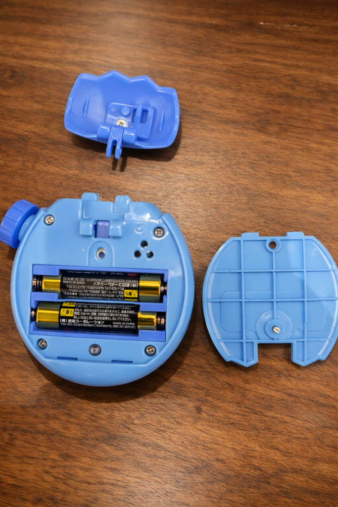 たまごっち背面にあるねじをプラスドライバーを使用して背面の電池カバー外してください。