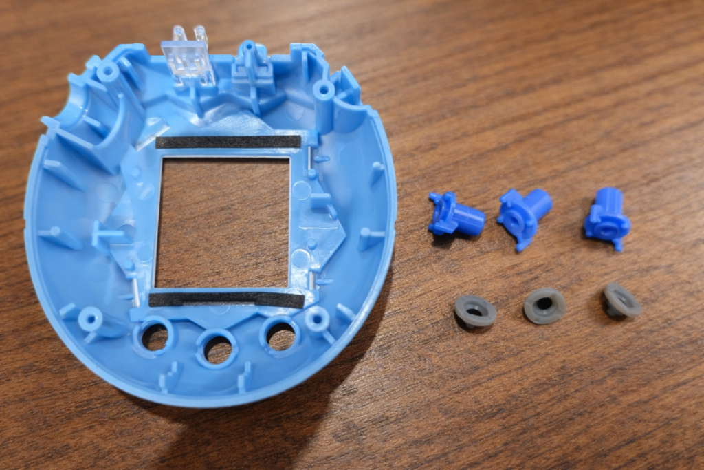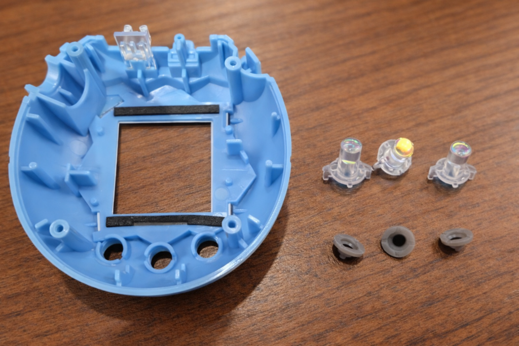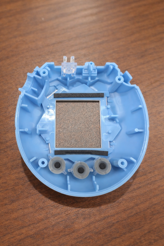 電池カバーが外れたら、たまごっち上部にある通信端子のカバーを取り外します。