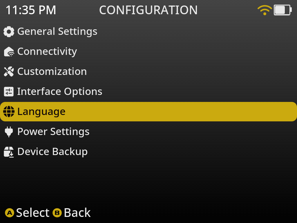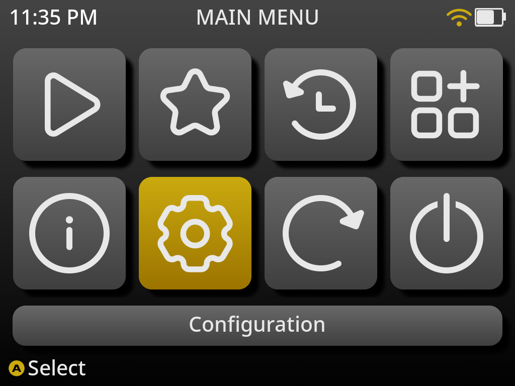 muOSのロゴが起動して、上記のようなホーム画面が表示されていればCFWの導入に成功しています。